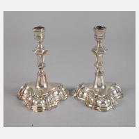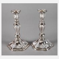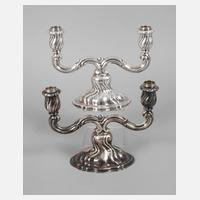 Mitte 20. Jh., gestempelt 925 Sterling, Herstellermarke stehender Löwe, blütenartig geschweifter Standfuß, feststehende Tüllen, Barockform, Fuß beschwert, geringe Gebrauchsspuren, H je 18 cm.