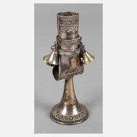 Israel, 2. Hälfte 20. Jh., gestempelt "Hazorfim 925", hohl gearbeiteter Fuß mit Ornamentbändern verziert, der Korpus mit aufgelegten Silberdrähten umschlungen, Schraubdeckel mit blütenverzierter Fahne, guter altersgemäßer Zustand, H 19,5 cm, G ca. 76,4 g.
