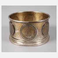 um 1910, gestempelt Halbmond, Krone, 800, Herstellermarke Hofgoldschmiede Körner & Proll, Silber, innen vergoldet, besetzt mit sechs verschiedenen altdeutschen Münzen vor 1871, am Stand etwas gedellt, sonst normale Altersspuren, D innen 9,5 cm, G ca. 242 g.