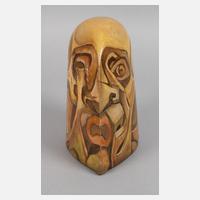 2. Hälfte 20. Jh., signiert, Keramik bunt bemalt sowie beigegeben möglicherweise Entwurfszeichnung, diese ebenfalls signiert, Tuschzeichnung, partiell aquarelliert auf getöntem Papier, die Keramik als abstrakte Darstellung eines länglichen, phantasievoll bemalten Kopfes mit asymmetrischen Gesichtszügen, H Kopf 24 cm, Maße Zeichnung Passepartout 40 x 30 cm, Außenmaße 63 x 47,5 cm. Künstlerinfo: russisch-amerikanischer Bildhauer, Maler, Grafiker, Kunstphilosoph (1925 Swerdlowsk bis 2016 New York), studierte ab 1947 an der Kunstakademie Lettlands in Riga, danach Ausbildung am Surikov Moscow Art Institute und am Philosophy Department der Moscow State University, Vertreter des Expressionismus, bekanntestes Werk ist die "Maske der Trauer", ein 15 Meter hohes Denkmal für die Opfer sowjetischer Säuberungen in Magadan, 1996 Staatspreis der Russischen Föderation, 2004 Ehrenmitglied der Russischen Akademie der Künste. Quelle: Internet.