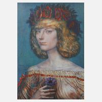 Portrait einer jungen Frau mit blumenverziertem Haar und geschlossenen Augen, Radierung mit dezentem Kolorit, siehe Werksverzeichnis Weis/Fuchs 290, 1978, unter der Darstellung in Blei rechts signiert „Ernst Fuchs“ und links nummeriert „172/300“, leicht gebräunt, unter Passepartout und hinter Glas gerahmt, Darstellungsmaße ca. 33,5 x 34 cm. Künstlerinfo: österreichischer Maler, Graphiker, Plastiker, Architekt und Musiker (1930 Wien bis 2015 Wien), studierte 1945–50 an der Wiener Akademie bei Albert Paris von Gütersloh, 1948 Mitgründer der "Wiener Schule des Phantastischen Realismus", 1950–62 Parisaufenthalt, unterbrochen von Studienreisen nach Amerika, Italien, Spanien, England und 1957 mehrmonatigen Aufenthalt im Kloster "Dormitio" in Jerusalem, pflegte Künstlerfreundschaften zu Salvador Dali, Jean Cocteau, Arno Breker, Mati Klarwein, Leonor Fini und mit dem Kreis um Jean-Paul Sartre, 1962 Rückkehr nach Wien, 1966 Professur, in den 1970er Jahren zunehmend Design- und Architekturentwürfe sowie Bühnenbildner, seit 1988 zeitweilig in Monaco tätig, erhielt zahlreiche Ehrungen, in internationalen Sammlungen vertreten, Quelle: Vollmer und Internet.
