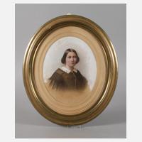 Brustbildnis einer jungen Frau mit gelocktem schwarzen Haar und hellem Kleid, dem Blick auf den Betrachter gewandt, Pastell, um 1810, hinter Glas in Rahmen der Zeit gerahmt, Sichtmaße ca. 57,5 x 49,5 cm.