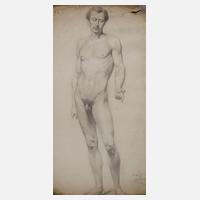 nackter stehender Mann mit angedeutetem Stab in seiner Hand, Bleistiftzeichnung, rechts unten signiert, datiert und bezeichnet „L. Schulz 1865 Roma“, im Randbereich Erhaltungsmängel, gerollt, Blattmaße ca. 54 x 30,5 cm.