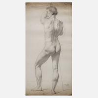 Rückenansicht eines nackten stehenden Mannes mit Stab, Bleistiftzeichnung, rechts unten signiert, bezeichnet und datiert „L. Schulz Roma 1865“, im Randbereich Erhaltungsmängel, gerollt, Blattmaße ca. 54 x 29,5 cm.