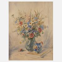 Wiesenblumenstrauß in Glasvase neben Buch und Porzellankännchen, Aquarell, um 1930, rechts unten signiert „E. Arnold“, leicht gegilbt, hinter Glas gerahmt, Falzmaße ca. 59,5 x 47 cm.