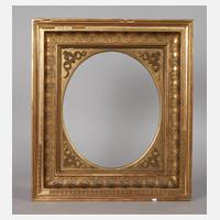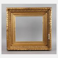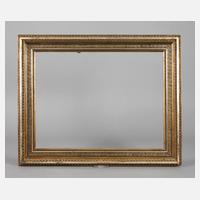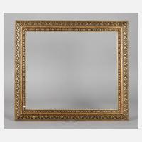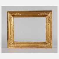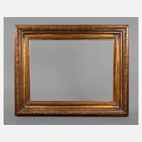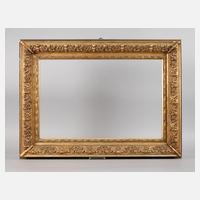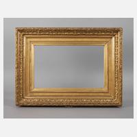 um 1870, Rahmen aus ca. 11 cm breiter, steigend profilierter, rückseitig gekehlter, mit ornamentalen Stuckfriesen verzierter vergoldeter Holzleiste, Gehrungen über Eck gearbeitet, bestoßen, Falzmaße ca. 49 x 73 cm.