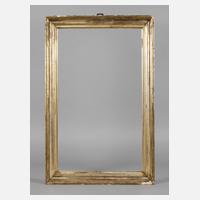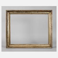 19. Jh., ca. 3,5 cm breite, steigend profilierte und versilberte Holzleiste, Gehrungen geschnitten, leichte Erhaltungsmängel, Falzmaß ca. 40 x 54 cm.