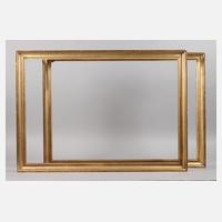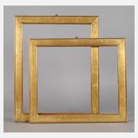 um 1880, Rahmen aus ca. 4,5 cm breiter, schlicht profilierter und vergoldeter Holzleiste, Gehrungen geschnitten, Altersspuren, Falzmaß ca. 35 x 42 und 36 x 47 cm.