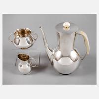 um 1930, Hersteller A. F. Rasmussen, gestempelt Denmark, Sterling, 925 S, Modellnr. 110, die Kanne mit abnehmbarem Deckel, Griff und Knauf aus Elfenbein geschnitzt, guter altersgemäßer Zustand ohne Beschädigungen, H Kanne 23,5 cm, G total ca. 1002 g.