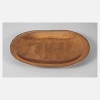1930er bis 1950er Jahre, geprägte Werkstattmarke mit Schriftzug Meersburg, Modellnummer 7377, handgetrieben, leicht gemuldete ovale Form mit gewölbtem Rand, stärkere Gebrauchsspuren, L 44 cm.