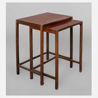 Entwurf Erich Dieckmann attr., Ausführung Bauhochschule Weimar, 1930er Jahre, eine Platte mit Brandstempel der Bauhochschule gemarkt, Eiche massiv und Schichtholz, Platte aus bordeauxfarbenen Resopal, Alters- und Gebrauchsspuren, etwas rest.bed., Maße 66 x 56 x 40 cm.