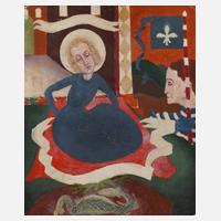 wohl Darstellung Mariens mit Jeanne d’Arc als Siegerinnen über das Böse in Gestalt eines Drachens, gering pastose Malerei, Öl über Bleistift auf Karton, rückseitig gestempelt "Hermann Dieckmann Goslar - Mal- und Zeichenbedarf für Kunst und Technik" und "Zet Nr. 135 L Günther Wagner" nebst diversen Annotationen wie "Erich Dieckmann 1921", farbschwundrissig, geringe Erhaltungsmängel, ungerahmt, Maße ca. 46 x 38 cm. Künstlerinfo: dt. Tischler, Hochschullehrer und Möbelentwerfer (1896 Kauernik/Westpreußen bis 1944 Berlin), 1918-20 Studium der Architektur an der technischen Hochschule Danzig, ab 1921 Studium am Bauhaus in Weimar und hier von 1921-24 Tischlerlehre, nach Weggang von Marcel Breuer wird Dieckmann kommissarischer Leiter der Möbelwerkstatt am Bauhaus, 1925-30 Leiter der Tischlerwerkstatt an der Bauhochschule Weimar, 1931-33 Tätigkeit als Leiter der Tischlerwerkstatt an der Kunstgewerbeschule Burg Giebichenstein, ab 1939 in Berlin ansässig, Quelle: Wikipedia und Internet.
