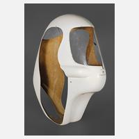 Entwurf: Luigi Colani 1978, GFK weiß lackiert, mit kompletten Montagezubehör, diese Fahrradverkleidung lässt sich auf jedes Fahrrad individuell montieren, an den Fenstern seitlich kleine Einrisse, sonst guter Allgemeinzustand, Kiste mit Anbauteilen beigegeben, Maße 176 x 180 x 68 cm. Info: Laut Vorbesitzer auf der Kölner Radsportmesse 1978 am Stand der Firma Cia Battino erworben.