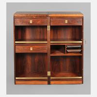 Entwurf Reno Wal Iversen, Dänemark, 1970er Jahre, aus massivem Rosenholz, Beschläge aus Messing, auf Rollen gelagerter aufklappbarer Korpus, innen drei mit Filz ausgeschlagene Schubkästen sowie zwei Schalen für Eis aus Edelstahl, zwei aufklappbare Platten mit Linoleumbelag, guter Zustand, Maße 88 x 45 x 60 cm.