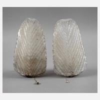 Italien, 1960er Jahre, einflammige Wandlampen mit blattförmigem Schirm, aus im Model formgeblasenem Klarglas mit aufgeschmolzenen Kröseln, gute Erhaltung, H je 26 cm.