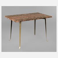 1960er Jahre, Ausführung Vereinigte Werkstätten München, die Beine aus Aluminiumguss, goldeloxiert und schwarz gefasst, rot-grau geäderte Marmorplatte, Maße 56 x 85 x 50 cm.