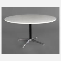 Entwurf Charles & Ray Eames, Ausführung wohl Vitra, 2. Hälfte 20. Jh., weiße MDF-Platte auf vierbeinigem verchromten Aluminium-Gestell, der Fuß schwarz lackiert, guter Zustand, H 72 cm, D 136 cm.