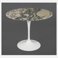 Entwurf Eero Saarinen für Knoll Inc. 1958, Ausführung Knoll International, weiß lackierter Metallfuß, grau geäderte Marmorplatte guter Zustand, H 73 cm, D 91 cm.
