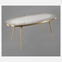 deutsch, 1950er Jahre, ovale in Messing gefasste Platte, kleine quadratische Mosaiksteine in Grautönen, Beine aus massivem Messing, guter Zustand, Maße 53 x 117 x 52 cm.