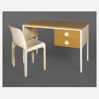 1970er Jahre, Stuhl Entwurf Vico Margestretti für Artemite Milano, Modell Selene, aus weißem Kunststoff, dazu passender kleiner Schreibtisch, Alters- und Gebrauchsspuren, Maße Tisch 72 x 100 x 55 cm.