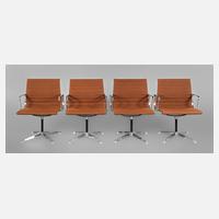Modell EA108 Alu, Entwurf Charles und Ray Eames, Ausführung Vitra für Hermann Miller, 1980er Jahre, verchromtes Aluminiumdrehgestell, brauner Hopsackbezug, guter Originalzustand, Chrom Z 2, Maße 87 x 58 x 52 cm.