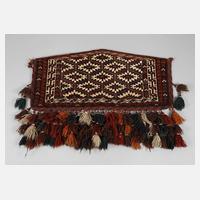 Turkmenistan, Mitte 20. Jh., cremefarbene Dessins über rostrotem Fond, Rautendekor und mehrteiliger Bordürenbereich, intakter Besatz, Maße je 31 x 20 cm.