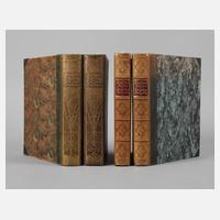Gottfried Keller, Der grüne Heinrich, 2 Bde., Berlin Grunewald o. J., Format Lex. 8°, Halbledereinbände. - Gustav Freytag, Soll und Haben, 2 Bde., Berlin/Leipzig 1923, Format Lex. 8°, Halbledereinbände; jeweils altersgemäß gut erhalten.