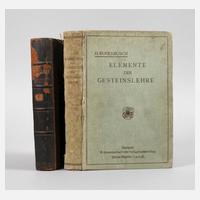 H. Rosenbusch, Elemente der Gesteinslehre von A. Osann, 4. Aufl., Stuttgart 1923, Format Gr. 8°, 779 S., Einband stockfleckig, Gelenk restaurierungsbedürftig, hinterste Seiten etwas verklebt. – Elemente der Mineralogie von Carl Friedrich Naumann, 11. Aufl. durch Ferdinand Zirkel, Leipzig 1881, Format Gr. 8°, 735 S., Halbledereinband, altersgemäße Erhaltung.