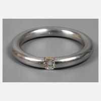 um 2000, Platin gestempelt 950, in Spannringoptik, besetzt mit einem Brillant von ca. 0,12 ct, RW 18 mm, G ca. 10,3 g.
