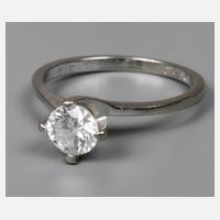 um 2000, Weißgold gestempelt 585 sowie Herstellerpunze und Nummerierung, besetzt mit einem Brillanten von ca. 0,6 ct, Farbe leicht getöntes Weiß, Reinheit Piqué I, leichte Tragespuren, RW 17 mm, G ca. 2,5 g.