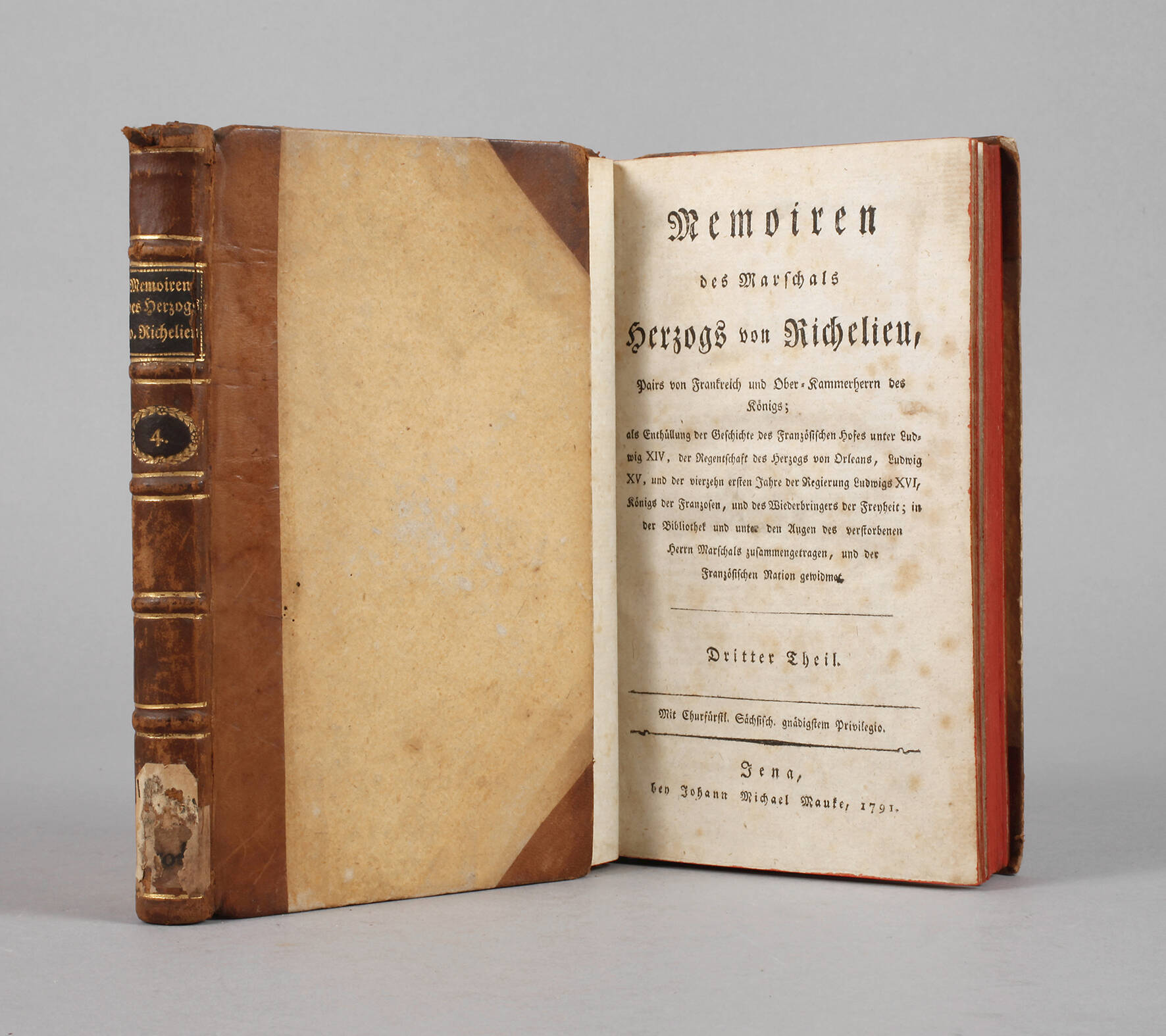 3. und 4. Teil, Jena bei Johann Michael Mauke 1791, Format 8°, Halbledereinbände mit Rückenschildchen, Rotschnitt, altersgemäß gut erhalten.