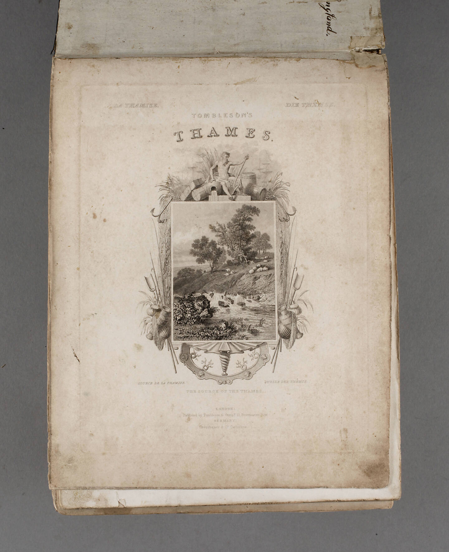 [Ansichten an den Ufern der Themse in England in Stahlstichen], Tombleson & Comp. London/Creuzbaner & Co. Carlsruhe, o. J. [um 1840], Format Gr. 8° quer, 60 Blatt, die hinteren Blätter alt restauriert und die Stahlstiche auf sekundär verwendetem Papier montiert, die Randbereiche meist sehr abgegriffen, die Stahlstiche selbst aber meist altersgemäß gut erhalten.