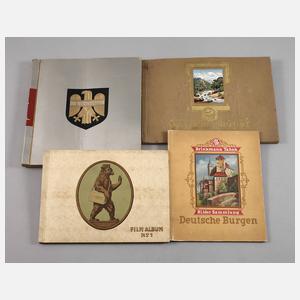 bestehend aus vier Alben: Deutsche Burgen, hrsg. von Brinkmann Bremen; bis auf Wartburg und Fürstenau vollständig. - Josetti Film Album No. 1; vollständig. - Deutsche Kolonien; vollständig. - Die Reichswehr, hrsg. von Haus Neuenburg 1933; unvollständig.