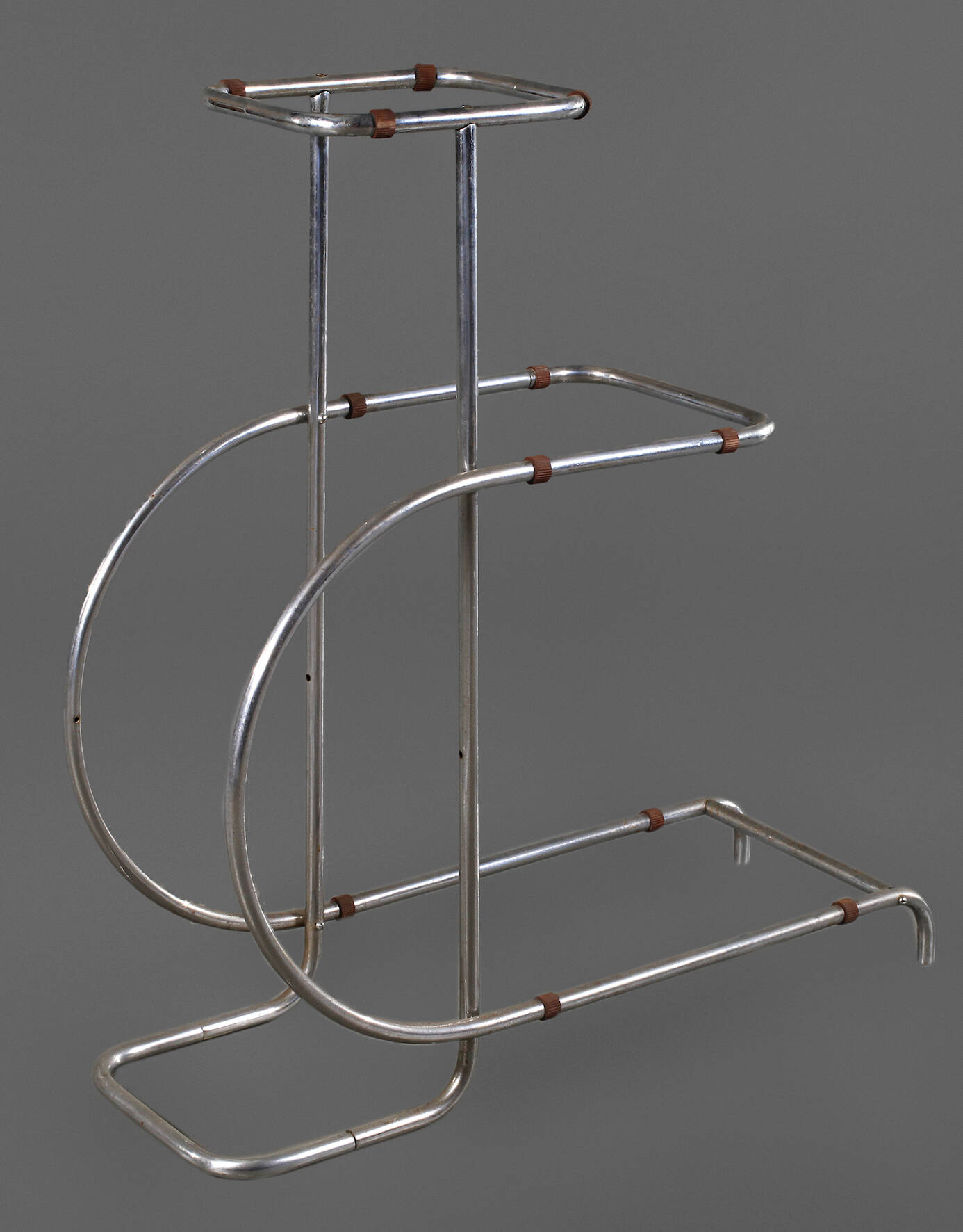 wohl Tschechien, 1930er Jahre, aus verchromtem Stahlrohr mehrteilig verschraubt, mit originalen Gummiauflagen, Glasscheiben fehlen, Chrom Z 3, Maße 98 x 90 x 35 cm.