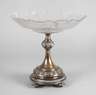 um 1880, ungepunzt, Silber geprüft, reich verziert mit Ornamentbändern, der Aufsatz aus farblosem Glas, mit Kerb- und Mattschliffornamentik reich verziert, mit einer floralen Rosette verschraubt, die Kanten unbeschädigt, Silber etwas angelaufen, H 25 cm.