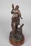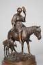 Russland, um 1880, auf der Plinthe signiert, Bronze nuanciert dunkel patiniert und äußerst detailreich nachbearbeitet, Darstellung einer Spinnerin in ländlicher Tracht mit Handspindel und Rocken zu Pferd, ein Fohlen bei Fuß, der Stute an der Spindel schnuppernd, auf naturalistisch gestalteter ovaler Plinthe, auf rötliche Marmorplinthe montiert, gute Erhaltung, H Bronze 28,5 cm, H gesamt 30,5 cm.