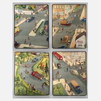 1960er Jahre, ohne Hersteller, herausgegeben von Esso, Farblithografien auf Karton, alle mit Aufhängung und Paspelierung, teils gewölbt, kleinere Wasserschäden, Maße je ca. 102 x 77 cm.
