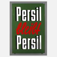 um 1920, ohne Hersteller, hochrechteckiges planes Schild, vierfarbig emailliert, mit Umschrift Persil bleibt Persil, drei originale Befestigungsösen, sehr gute Erhaltung mit winz. Emailfehlstellen, Z 1, Maße 120 x 78 cm.