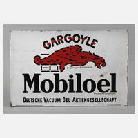 um 1930, Hersteller Boos & Hahn Ortenberg-Baden sowie Vermerk Eigentum der Deutschen Vacuum Oel Aktiengesellschaft Hamburg, rechteckiges, ebenes Schild, doppelseitig dreifarbig emailliert, für Gargoyle Mobiloel, Maße 39 x 60 cm.