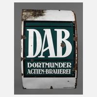 Anfang 20. Jh., Herstellervermerk Rhenania Emaillierwerk Düsseldorf, konvex geformtes hochrechteckiges Schild für die Dortmunder Actien-Brauerei, dreifarbig emailliert, partielle Emailverluste, Korrosionsspuren, Z 2-3, Maße 143 x 97 cm.