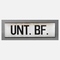 Mitte 20. Jh., ungemarkt, langrechteckiges, leicht gebauchtes Schild, zweifarbig emailliert, mit acht originalen Bohrungen, Maße 7,5 x 98 cm.