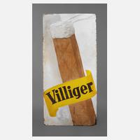 Mitte 20. Jh., signiert Ottler, gemarkt Pyro Email, Herstellervermerk Boos & Hahn Ortenberg-Baden, am unteren Rand bezeichnet Eigentum der Firma Villiger Söhne, Tiengen u. München, hochrechteckiges, bunt emailliertes Blechschild, in den oberen Ecken Bohrungen für die Befestigung, die Kanten etwas korrodiert, mit kleinen Fehlstellen, Altersspuren, Maße 120 x 63 cm.
