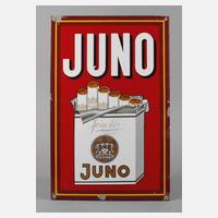 1930er Jahre, Werbeschild der Firma Josetti, ungemarkt, hochrechteckiges, abgekantetes Schild mit lithografierter Zigarettenschachtel, mehrfarbig emailliert, mit vier originalen Bohrungen, mehrere Abplatzer am Rand und einer im Schriftzug, Altersspuren, Maße 58 x 38 cm.