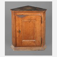 Anfang 19. Jh., Nadelholz massiv, eintürig, mit abgeschrägten Ecken, innen ein Einlegeboden, Schloss fehlt, unrestaurierter Originalzustand, Maße 80 x 73 x 43 cm.