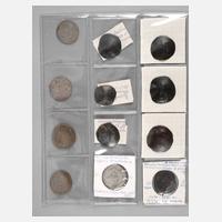 12 Stück: 7 byzantinische Münzen 11./12. Jh., davon 6 Schüsselmünzen, s; 1/12 Reichstaler Brandenburg 1688, ss; VI Kreuzer Habsburg 1680, ss; 1/6 Reichstaler Köln 1754, vz; 1/12 Taler 1703 Sachsen (ILH, Dresden), ss+; 20 Kreuzer Habsburg 1806, fast vz.