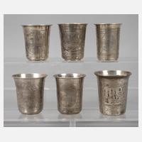 2. Hälfte 19. Jh., verschieden gestempelt und graviert, innen Reste alter Vergoldung, H max. 5 cm, G zusammen ca. 219 g.