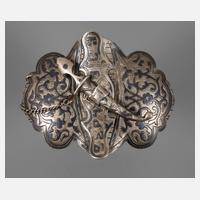 20. Jh., Silber gestempelt 925, in Niello-Technik und teilweise vergoldet, Tragespuren, Maße ca. 57 x 34 mm, G ca. 17,4 g.