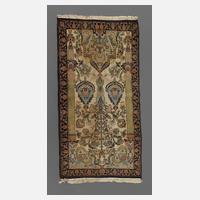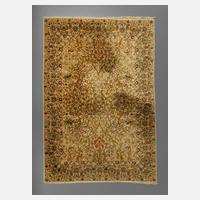 2. Hälfte 20. Jh., Blütendekor über naturfarbenem Fond, mehrteiliger Bordürenbereich, min. Altersspuren, Maße 116 x 69 cm.