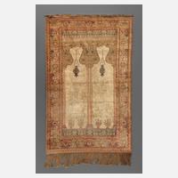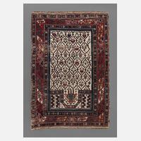 1. Hälfte 20. Jh., Gebetsteppich in klarem Kolorit, Ablaufspuren, alte Reparaturen, Maße 173 x 108 cm.