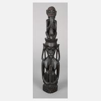 Westafrika, 1. Hälfte 20. Jh., der Volksgruppe der Senufo zugeordnet, Ebenholz fein beschnitzt, Darstellung einer hockenden Frau mit Reptil auf dem Rücken, darüber ein Kind beim Verzehr einer Schlange, H 40 cm.